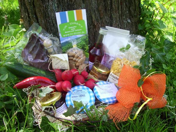Als Geschenkidee bietet der Verein den Tirschenreuther Landkreiskorb in zwei Größen an. In einem dunklen Weidenkorb sind unter anderem Geräuchertes, Likör, Speiserapsöl, Nudeln und weitere Schmankerl aus dem Landkreis ansprechend drapiert.